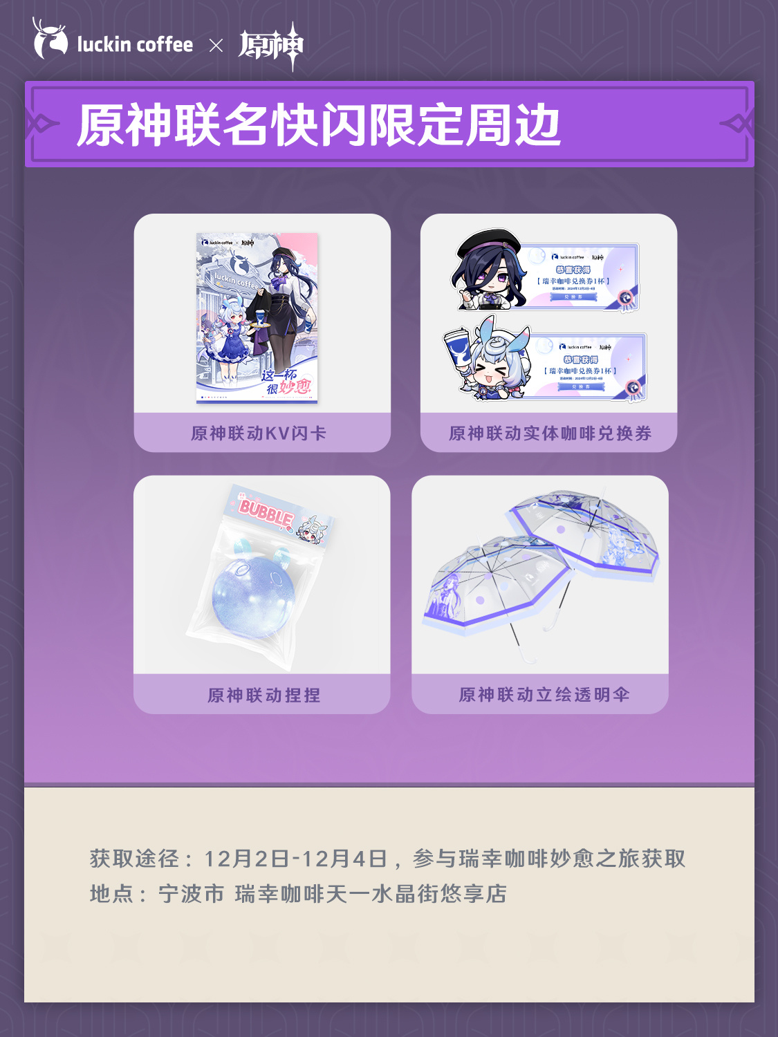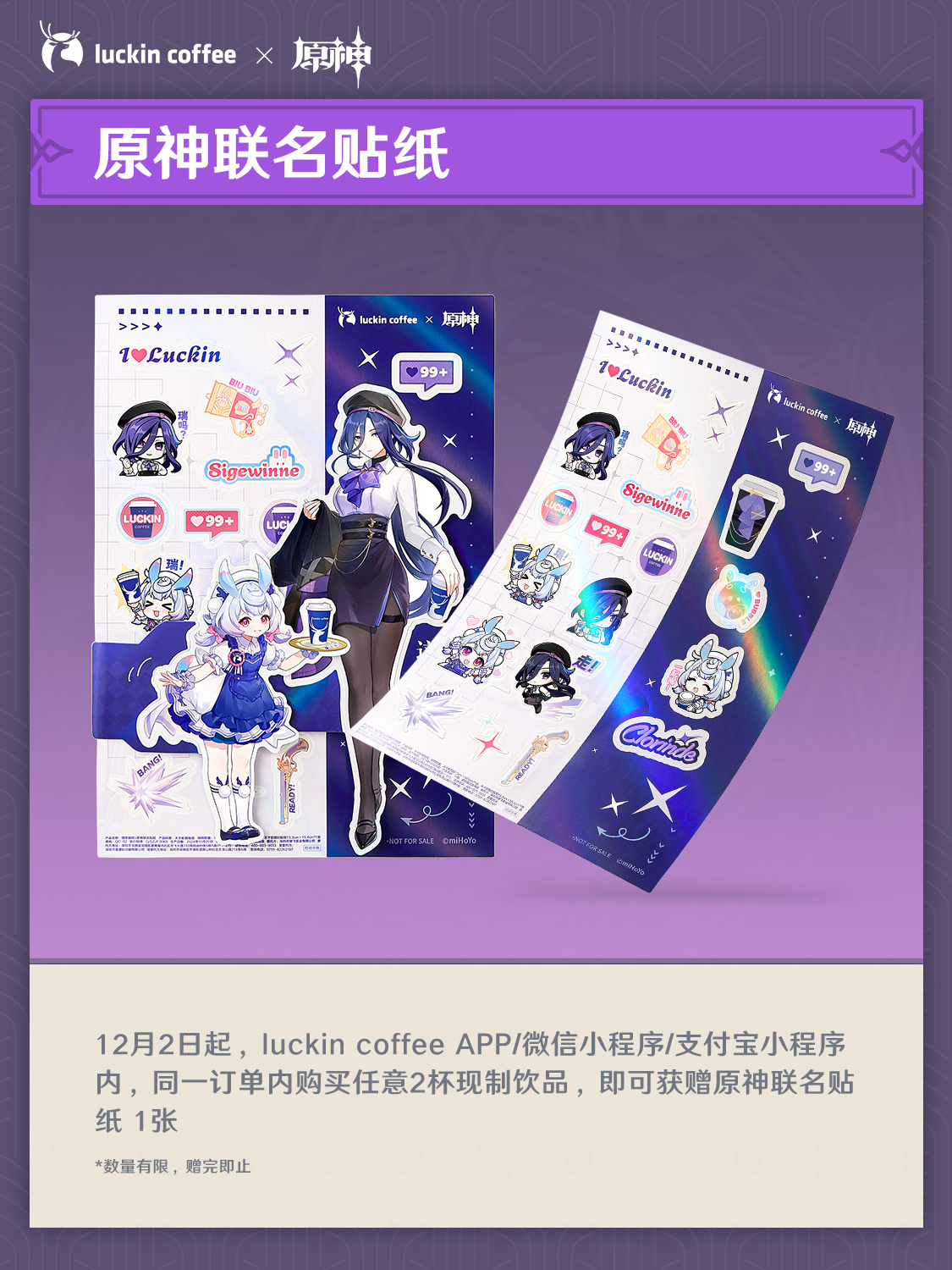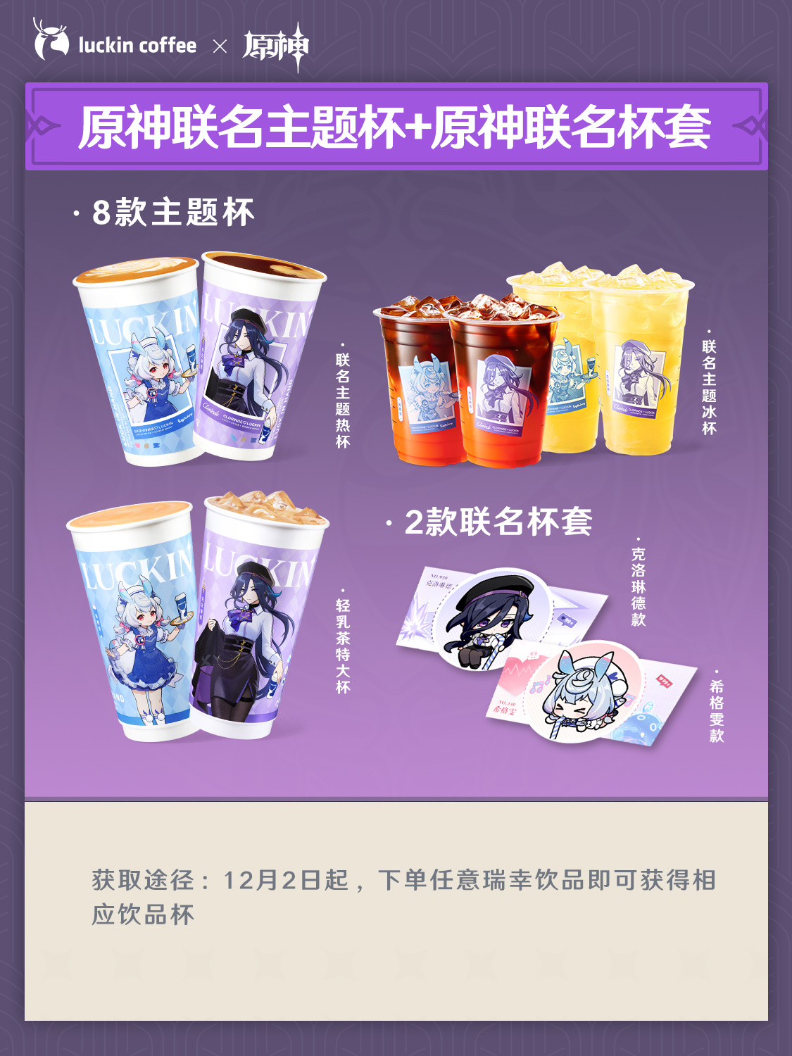 12月2日,《瑞幸×原神「妙愈祈愿」》活动上线,最高可获得365天咖啡自由卡和原神包年「空月祝福」奖励哦~