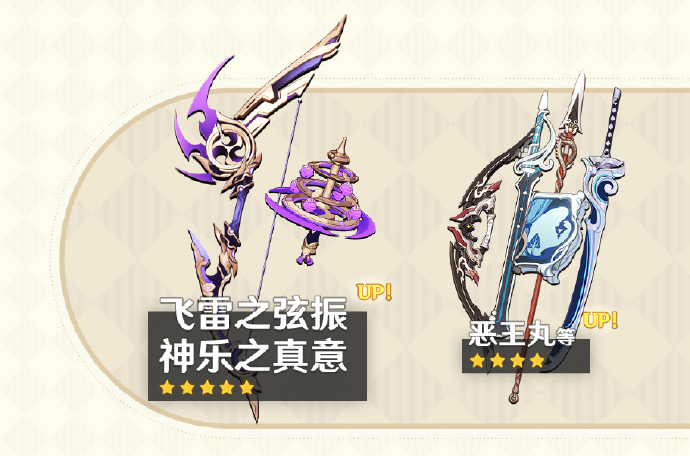 活动期间,限定五星武器「弓·飞雷之弦振」「法器·神乐之真意」的祈愿获取概率将大幅提升!