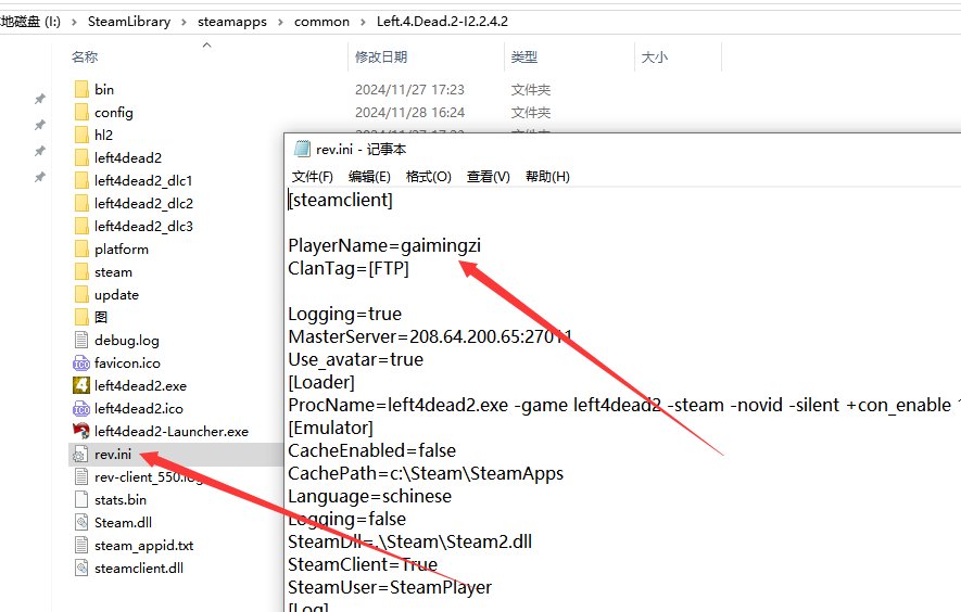 求生之路2改名教程记事本打开游戏目录的rev.ini,PlayerName = gaimingzi中的gaimingzi字段改成自己想要的英文名字。