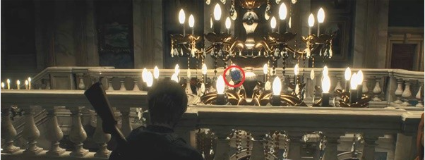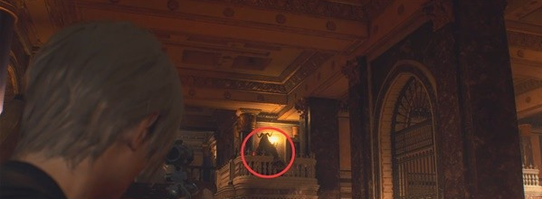大厅楼上画廊里,过桥时被敌人围攻,干掉楼上的红衣邪教徒。