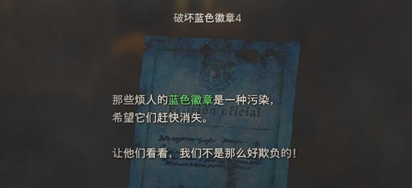 第9章经过中庭来到大厅,存档点旁接到悬赏任务“破坏蓝色徽章4”,