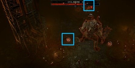 与BOSS战斗时,在屏幕上方的BOSS血条中可以看到多个红色的三角标志,每当BOSS的生命值掉落至三角刻度以下时就会掉落一次药水补给。