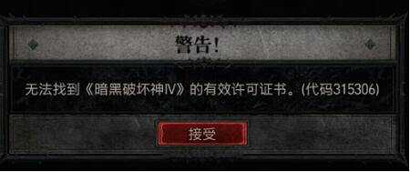 8、无法找到暗黑破坏神的有效许可证书,提示错误码315306,账号异常可以申请解决。