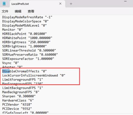 7、进去闪退可以找到暗黑4的安装路径,找到名为LocalPrefs的文件,打开后把disablechromaeffect改成1。