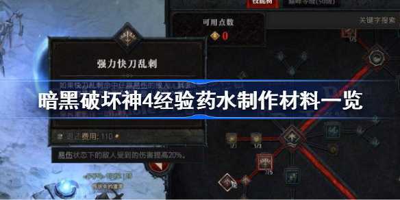 在暗黑破坏神4游戏中,玩家们使用经验药水能够获得大量的经验奖励,那么这个药水的制作材料是什么呢,下面就一起来看看具体的内容分享吧,感兴趣的小伙伴千万不要错过哦。