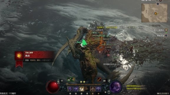 3、当boss把一只爪子伸向远方的时候就是要转圈圈了,连续转两圈。这时候跟着boss走,站近战位就没事。