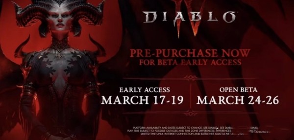 预购《暗黑破坏神IV》玩家的公开Beta 测试抢先体验日期为3 月18 日至3 月20 日。下一个周末,也就是3 月25 日至3 月27 日,公开Beta 测试将会开放给所有玩家来体验。