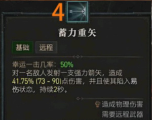 基础技能中推荐蓄力重失,它除了能给敌人挂易伤(受到伤害提升20%)外还能在解锁后续强化后击退敌人。
