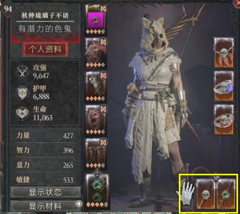 手套:核心技能等级提升、攻速、暴击和特定增伤。