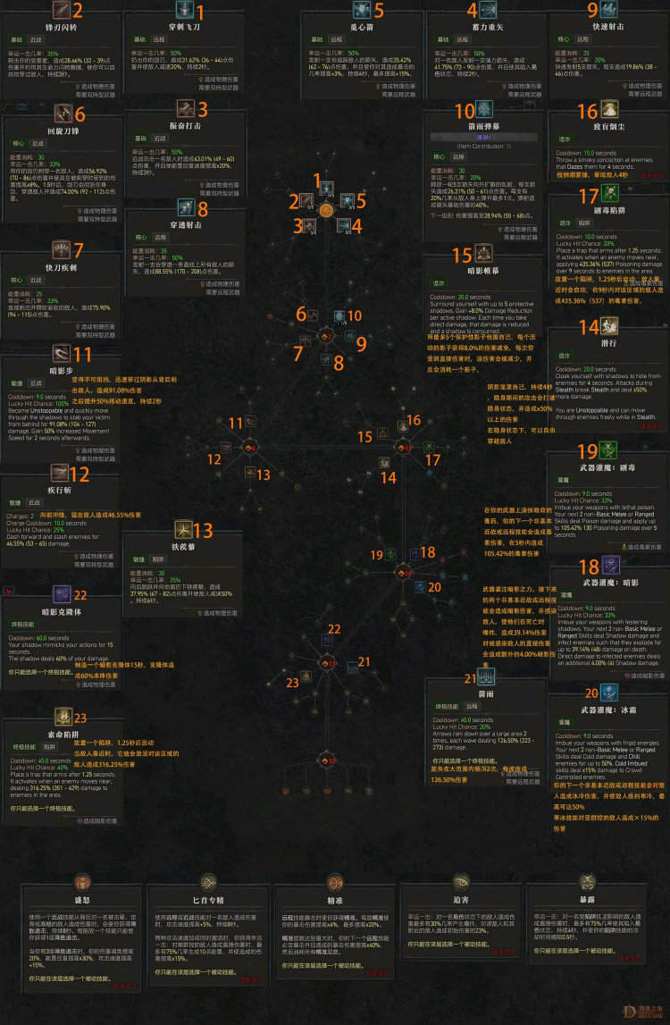 终极技能推荐点暗影克隆体,克隆体存在期间会复制我们的输出,他也会为怪物施加心眼标记,一般只有打BOSS和精英的时候用。