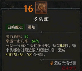 召唤类技能里最强的是多头蛇,它对单体敌人伤害极高而且无需我们操控,打压力精英和BOSS效果非常好。