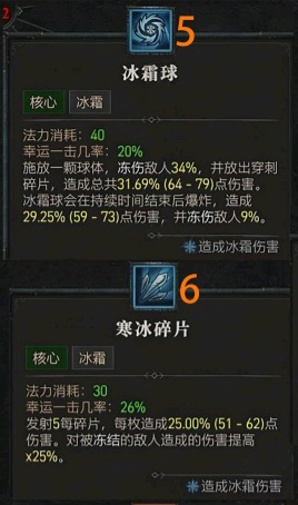 核心技能里前期推荐冰霜球和寒冰碎片两个,冰霜球的手感类似D2冰封秋,AOE能力强但需要控制距离,寒冰碎片打单体会强一些。