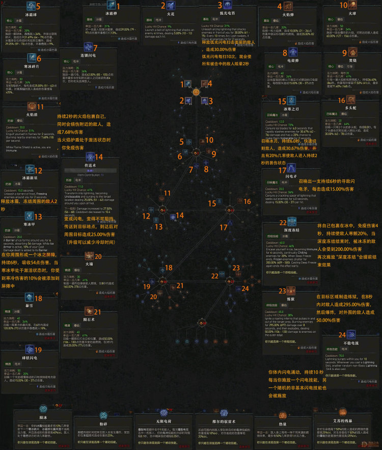 额外提一下,公测的25级洗点应该是免费的,所以你也可以反复尝试点出自己最理想的构筑,比如你要在后期玩火法,那就应该点火球而不是冰霜球。