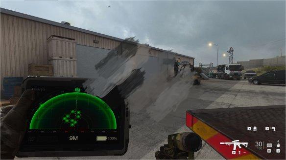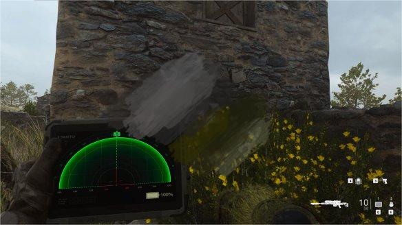 来到房子旁边,拿出心跳探测仪对房屋内进行侦查。