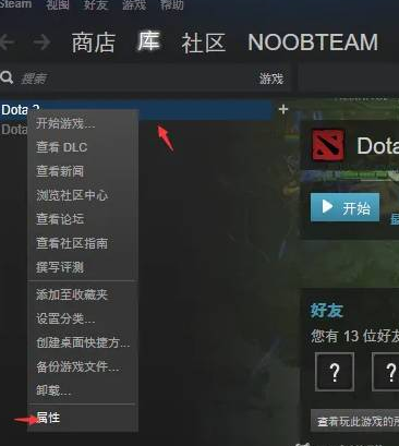 3、右键dota2,选择属性