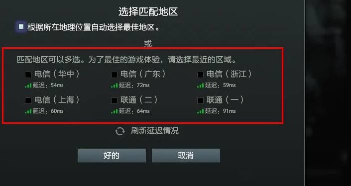 7、匹配地区选择自动,我们就能看到供选择的服务器都是国服了