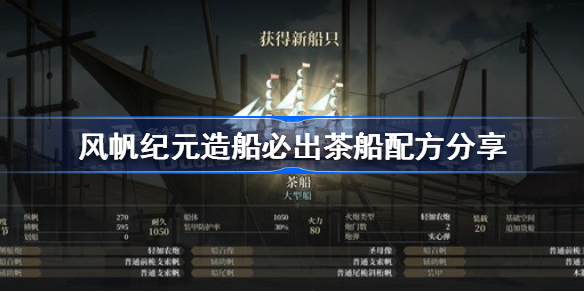 在风帆纪元游戏中,还有不少小伙伴不清楚造船怎么样才会必出茶船,下面就一起来看看具体的配方分享吧,感兴趣的小伙伴千万不要错过哦。