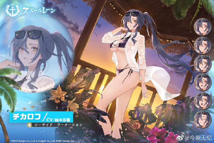 通过这次的泳装,可以看到很多之前没有注意到的小细节,比如说契卡洛夫本身有很多让人注意不到的小痣,包括左眼角,还有右眼的下方,以及耳垂上,可以说是把美人痣的特色都弄到位了,而且换了发型,从之前的长发飘飘换成了高马尾,泳装方面在很清凉的基础上,还附加了一层白色的薄纱侵染的衬衫,非常的贴合还有显身材。