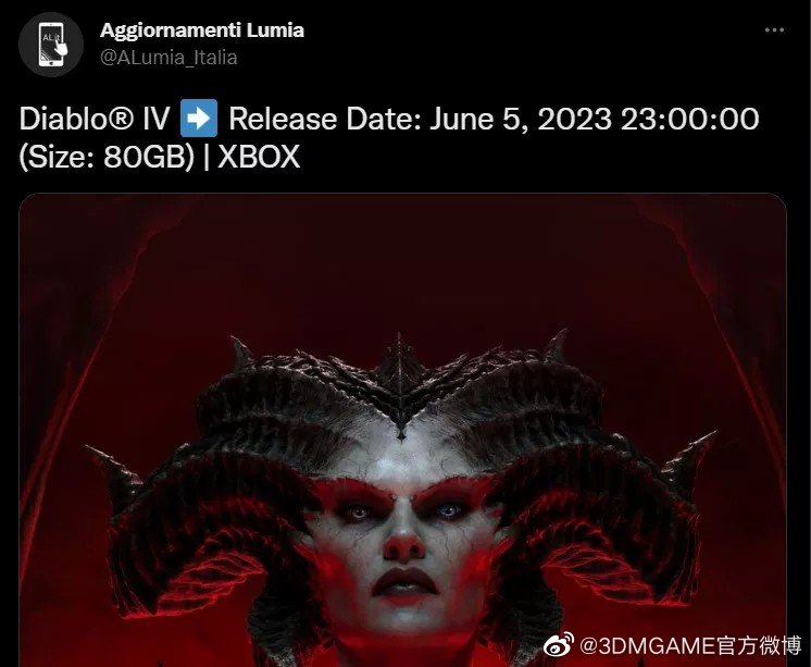 据舅舅党ALumia_Italia爆料,他从微软商店的隐藏列表中获取了《暗黑破坏神4》的发售日期: