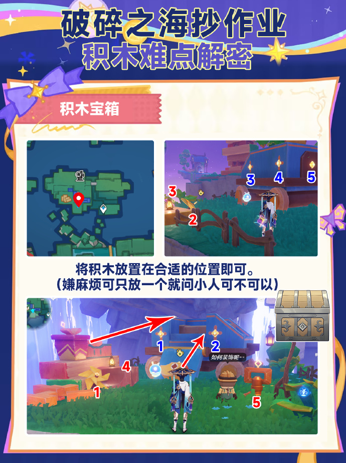 原神破碎之海的积木宝箱大家都找到了吗?这次破碎之海地图上有些积木宝箱解密有点难度哦!那么怎么才能积木宝箱全部收集呢?下面快跟随小编一起来看看原神破碎之海积木宝箱攻略吧。