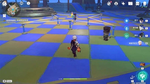 攻击发条3次回溯到最前面,点按"T"连接神谕柱