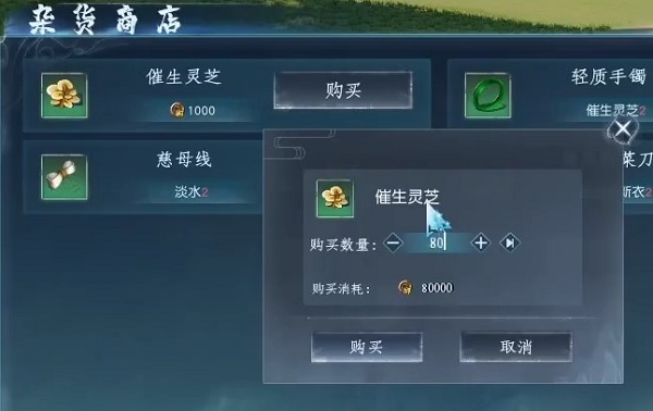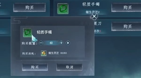1、德武堂新手村,找到蜀家商人找他买80个催生灵芝、40个轻质手镯。