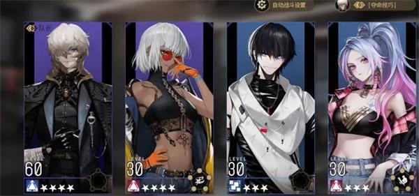 首先第一套阵容,开荒前期非常推荐的铜调队阵容组成丧钟,玄,起飞,叛逆,如果有拉斐尔可以换掉起匪叛逆也可以换成零六,这套阵容主c是上中核心,辅助是玄,两个挂件叛逆和起飞养成优先级。推荐上中玄起匪,叛逆阵容一速是旋,二速是叛逆,三速上中四处起飞。