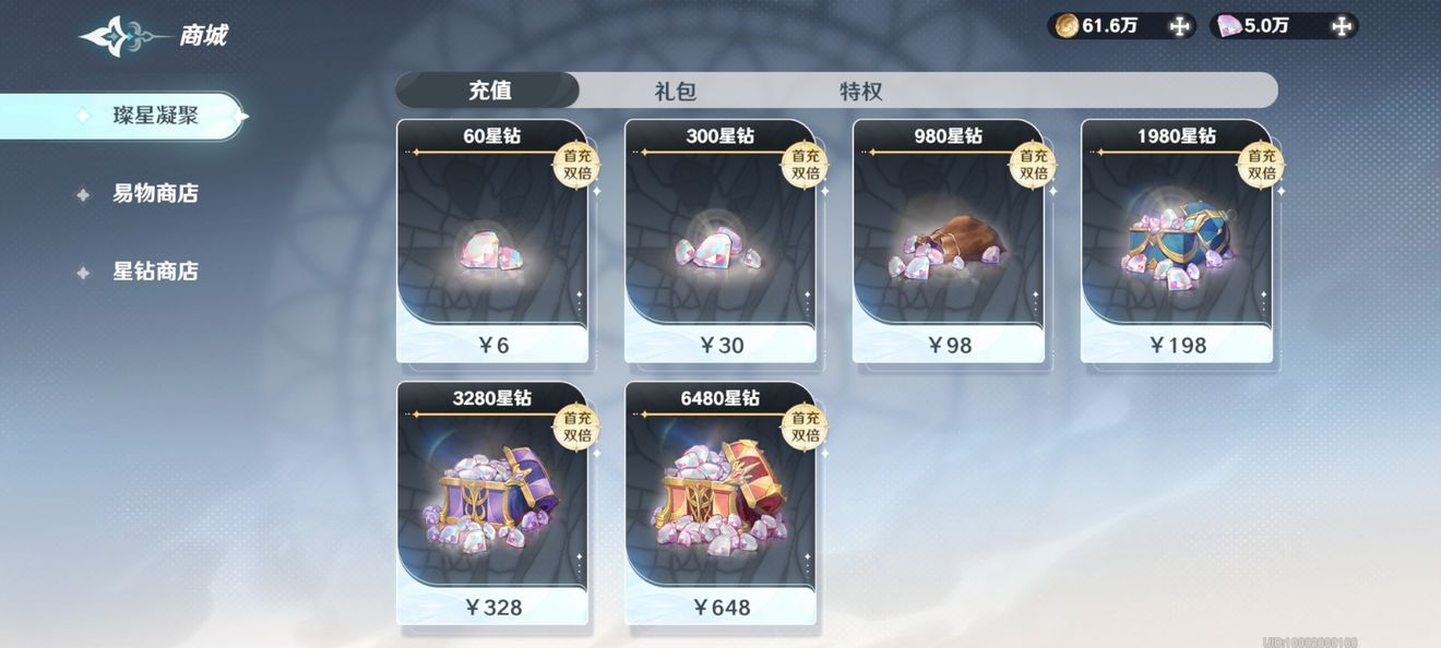 这款游戏的氪金系统,我们可以分为两类。第一类是:充值直接获取星钻;第二类氪金获取游戏特权。