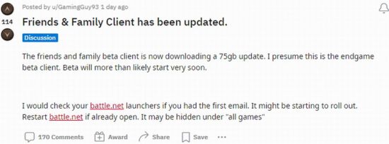 GamingGuy93表示:“亲友团测试客户端正在下载75G的更新,我猜测是后期封测版,封测可能即将开始了”。许多获得测试资格的玩家也表示,他们收到了更新。