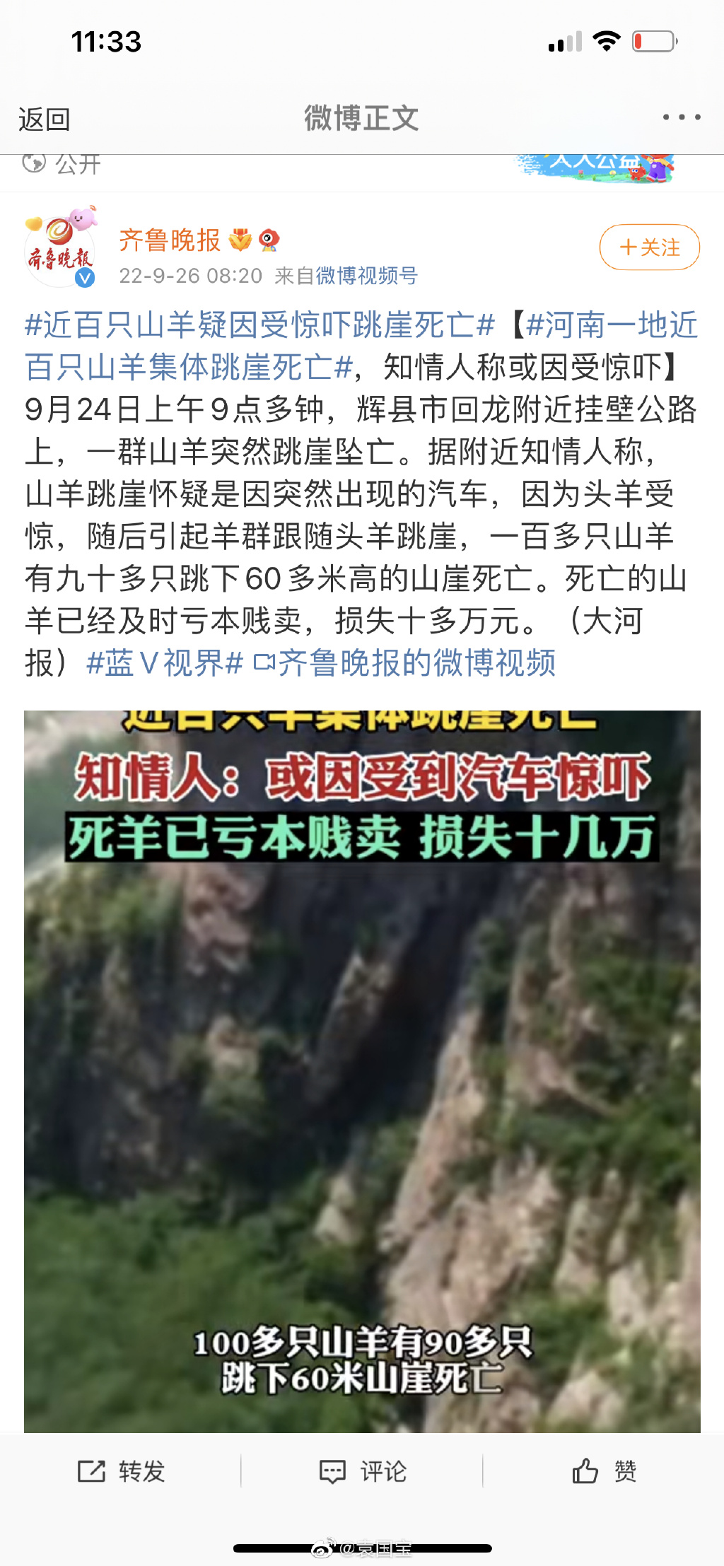 9月26日的微博热搜有一则关于河南一地近百只山羊集体跳崖死的新闻,下面小编为大家带来河南近百只山羊集体跳崖死亡原因,感兴趣的小伙伴一起了解一下吧。