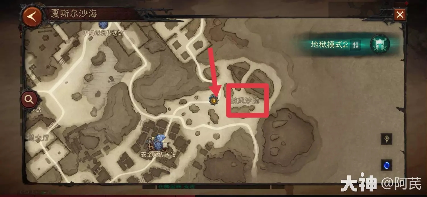 1.在掠风沙漠地图所示位置,找到npc学者洛斯,进行对话