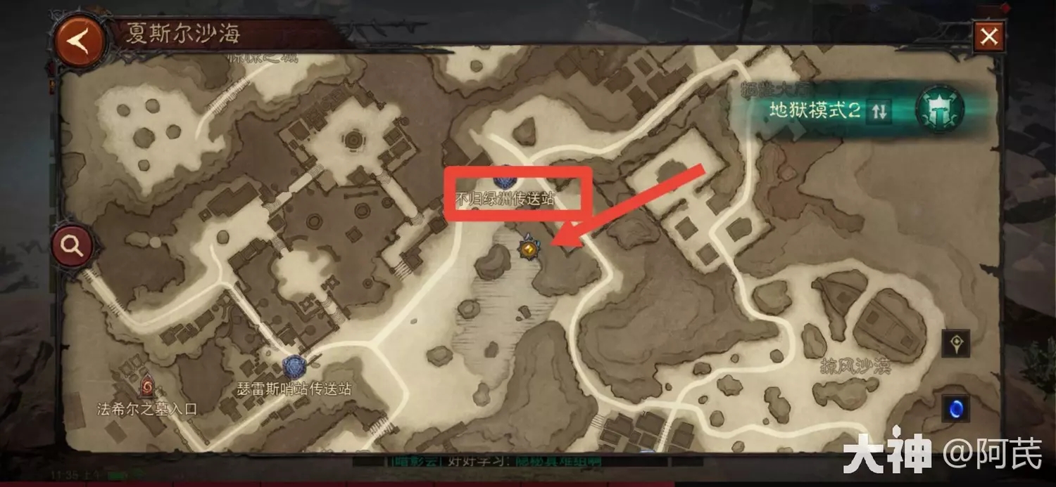 1.在不归绿洲传送站地图所示位置,找到npc维安,进行对话