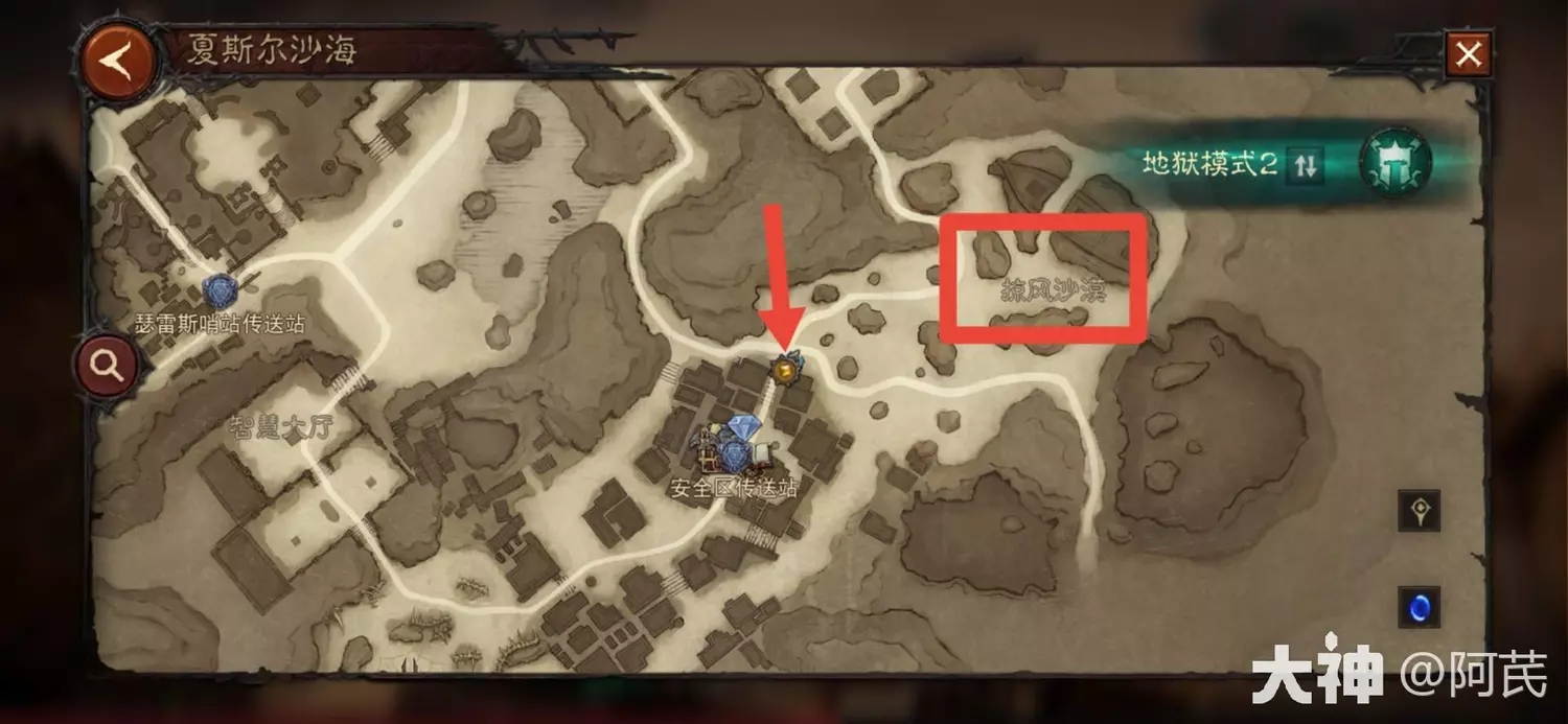 1.在掠风沙漠地图所示位置,找到npc温特,进行对话