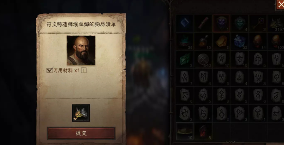 1、和黑森林符文铸造师对话—>进入遗忘之塔收集符文银石—>提交符文银石—>提交万用材料1个—>拾取陷阱