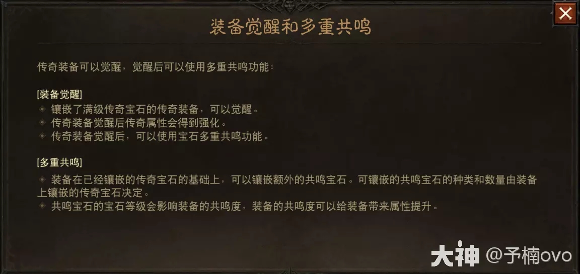 进行装备觉醒需要该装备镶嵌一颗10级传奇宝石才能觉醒(不论星级,因此优先升一些一星二星的宝石到10级方便加快觉醒进度)