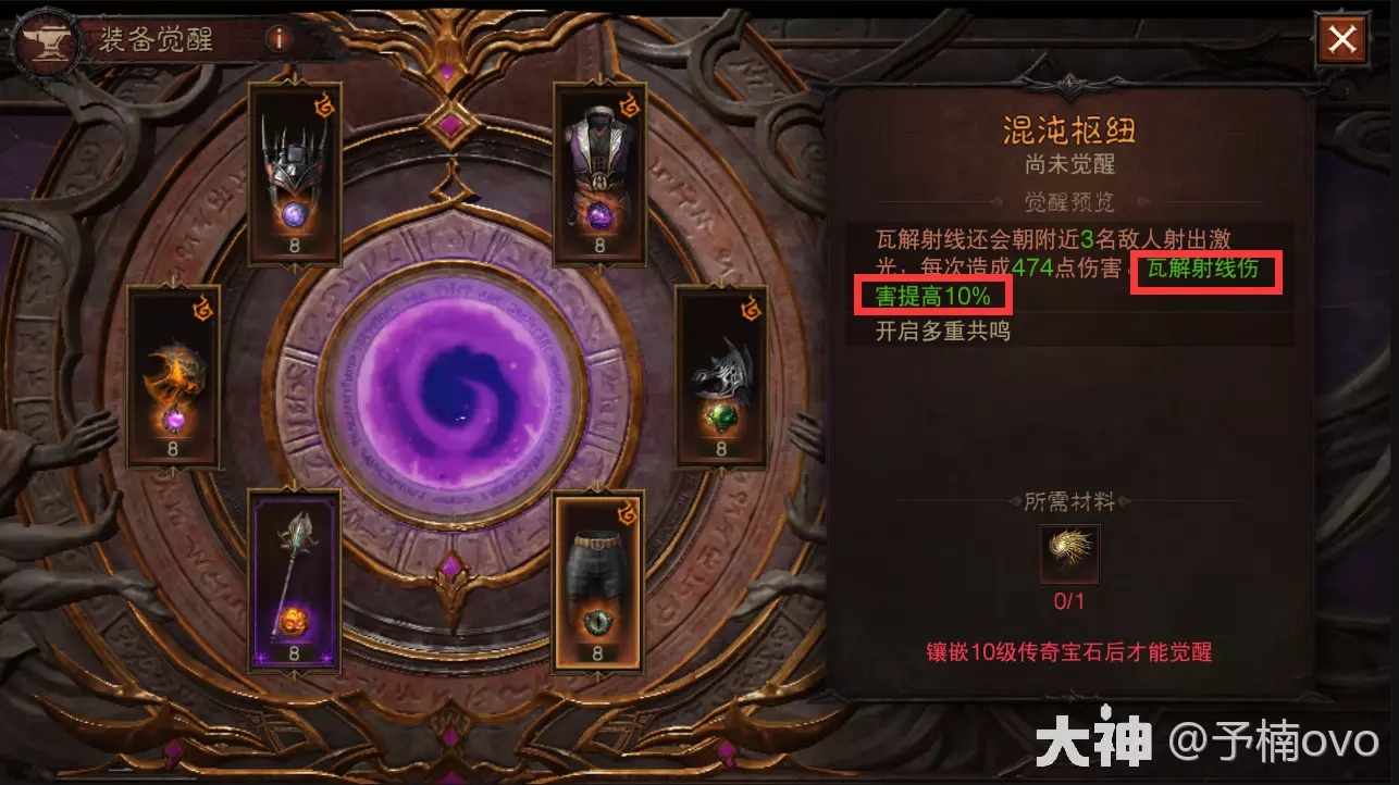 上面那句话换句话来说,就是已经被觉醒的部位必须要镶嵌了10级传奇宝石才能激活,如果激活了又拆下来换成低级宝石,觉醒就会停用。