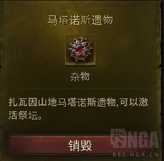 作用介绍:在远古噩梦对战的时候在祭坛激活消耗玛塔诺斯遗物,便会让远古噩梦的盾保护失去作用并且造成眩晕。