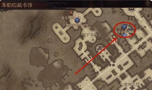 抵达之后,打开藏书馆的地图,把地图往右上角拖动,找到并且传送到【安全区】。