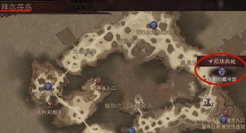 点击拜尔芬岛这片区域后,就能在地图的最右侧看见【库勒的藏书馆】了,点击藏书馆的名称可以选择传送前往此处。