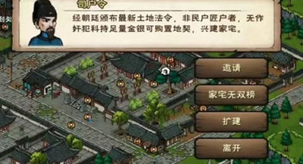 扩建如果选择了小规模的房屋,可以扩建从而提升规模。扩建需要补差价,但银两建筑扩建到元宝建筑时,先前花费的银两不返还