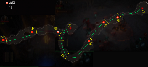 ① 清掉小怪火门消失 → ②清掉小怪火门消失 → ③清掉小怪火门消失 → ④第一次打巴尔 → ⑤与佐敦对话,佐敦开火门 → ⑥清掉小怪,佐敦开火门 → ⑦清掉小怪,佐敦开火门 →⑧清掉小怪,佐敦开火门 → ⑨第二次打巴尔,结束副本