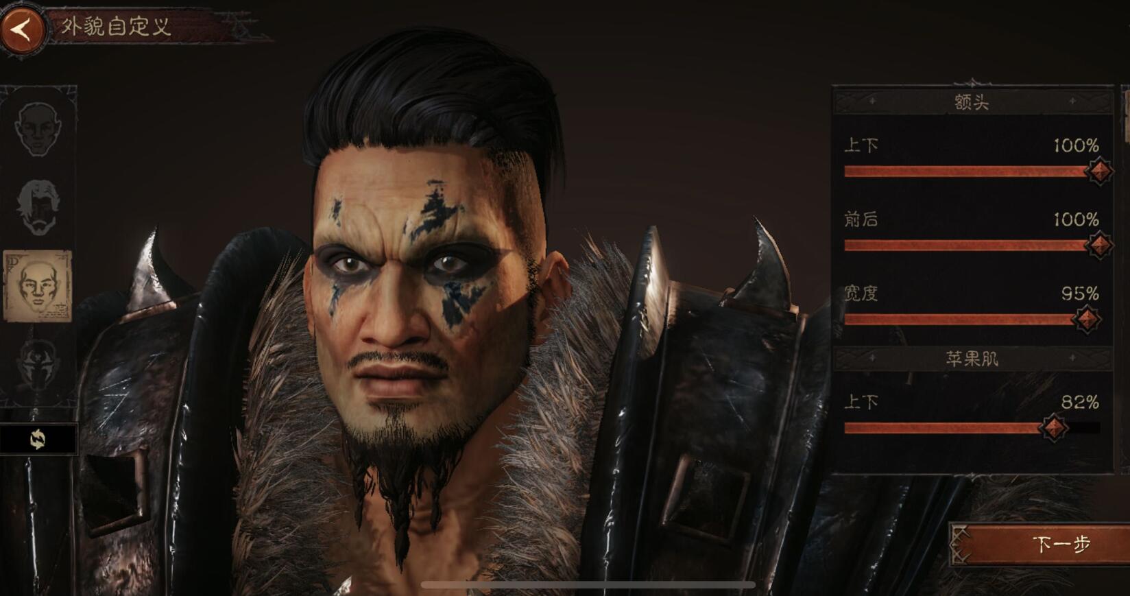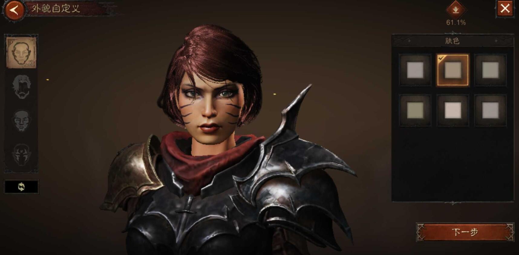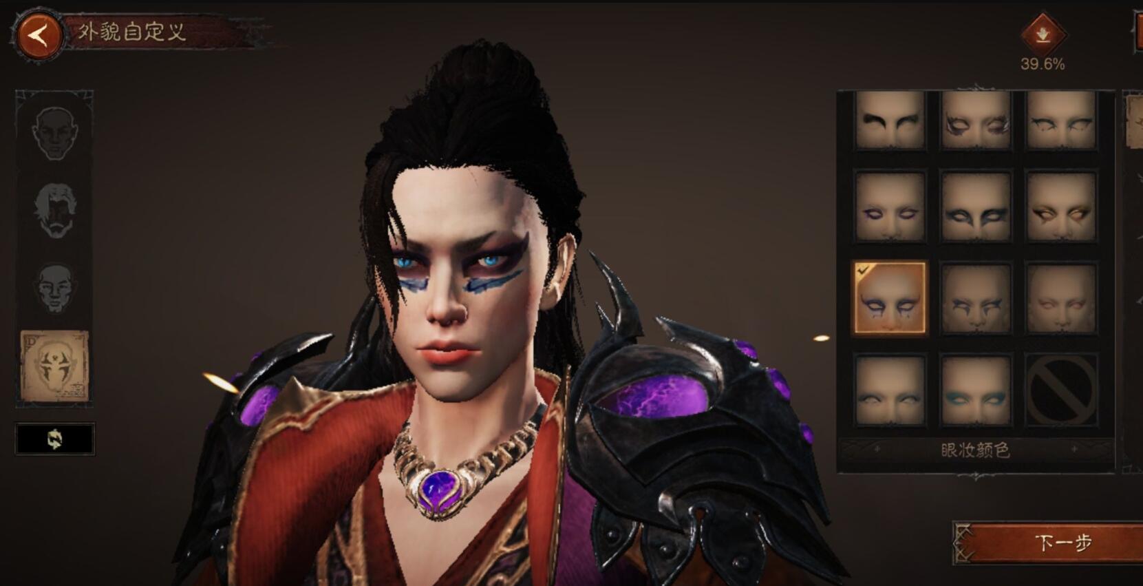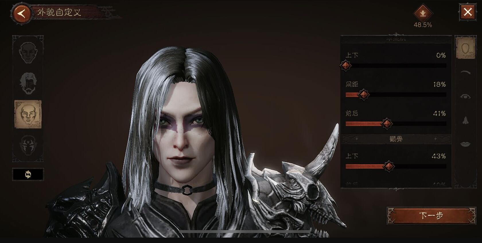 3、进入到外貌自定义之后就可以对自己角色的外貌自由的进行设置,完成后点击下一步。