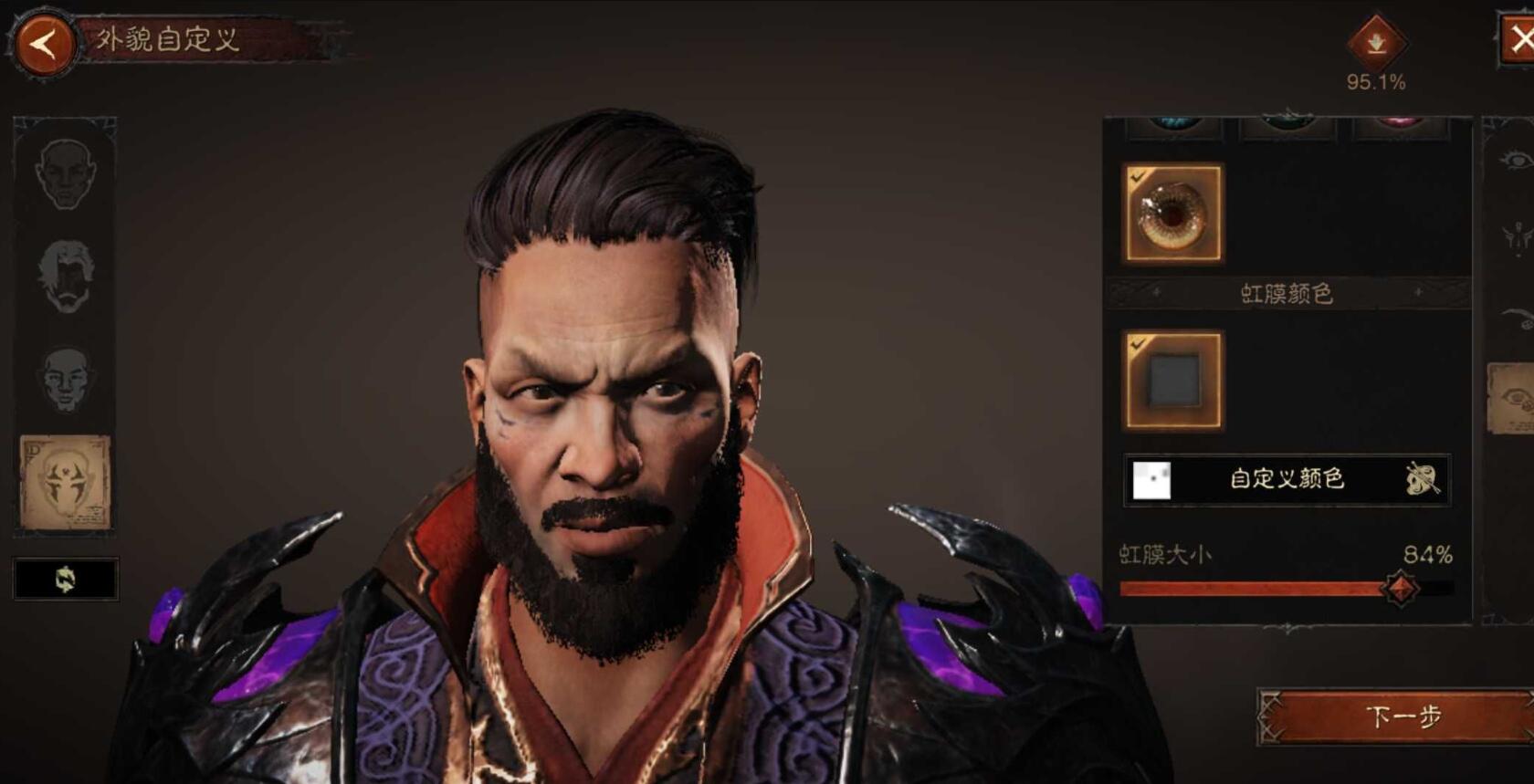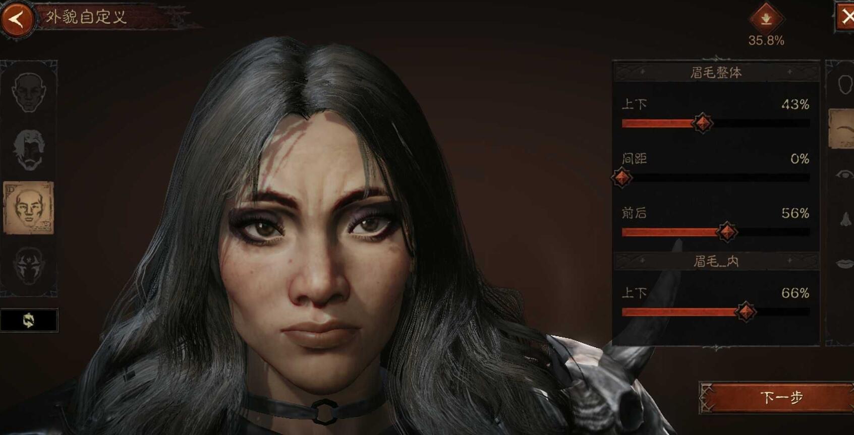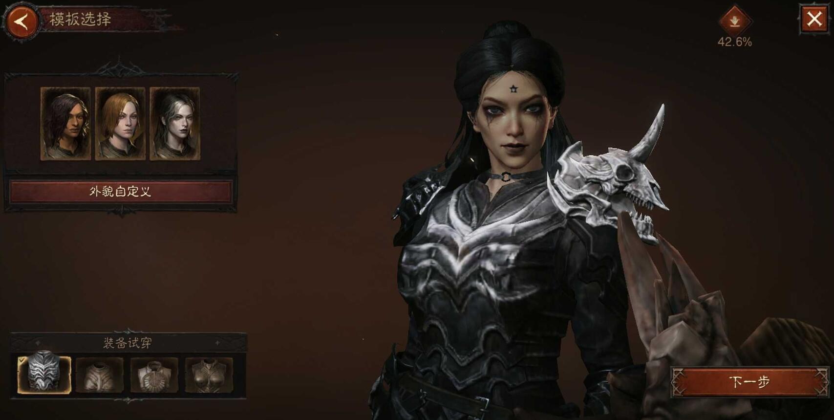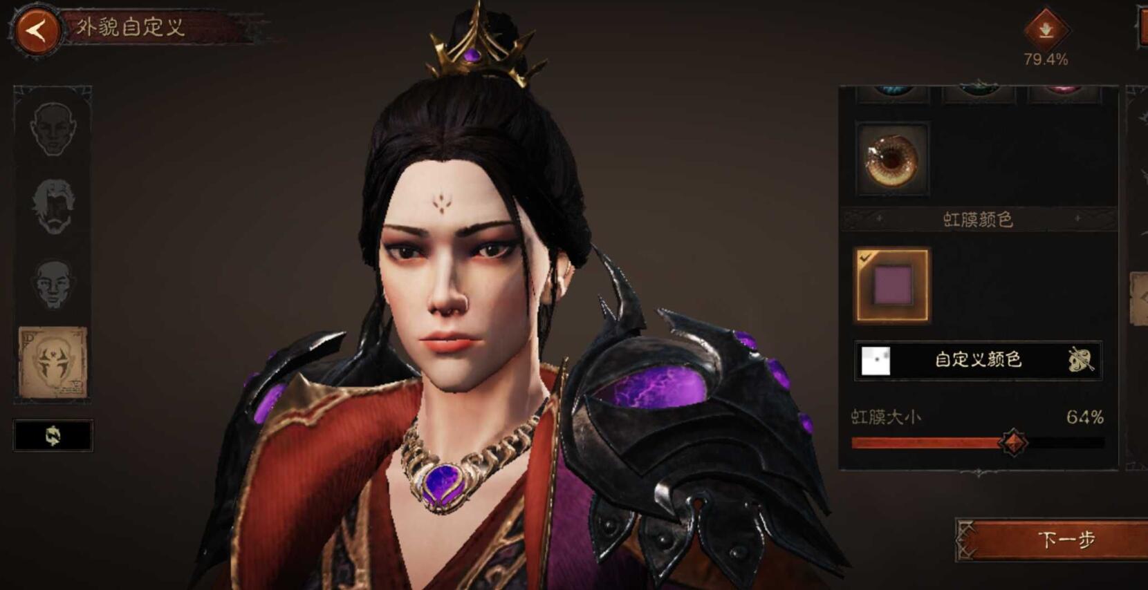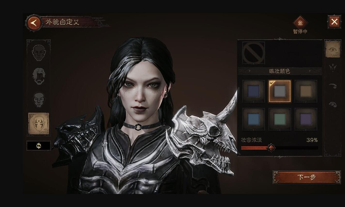 3、进入到外貌自定义之后就可以对自己角色的外貌自由的进行设置,完成后点击下一步。