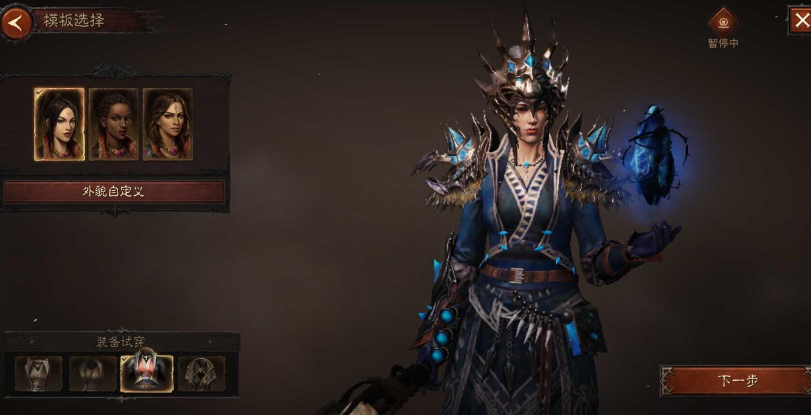 1、首先玩家进入到游戏之后,这里需要进行角色职业以及性别的选择,之后点击下一步。