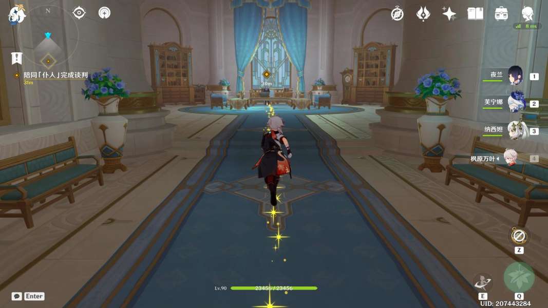 传送枫丹廷神像,前往沫芒宫门口,与仆人对话3分钟
