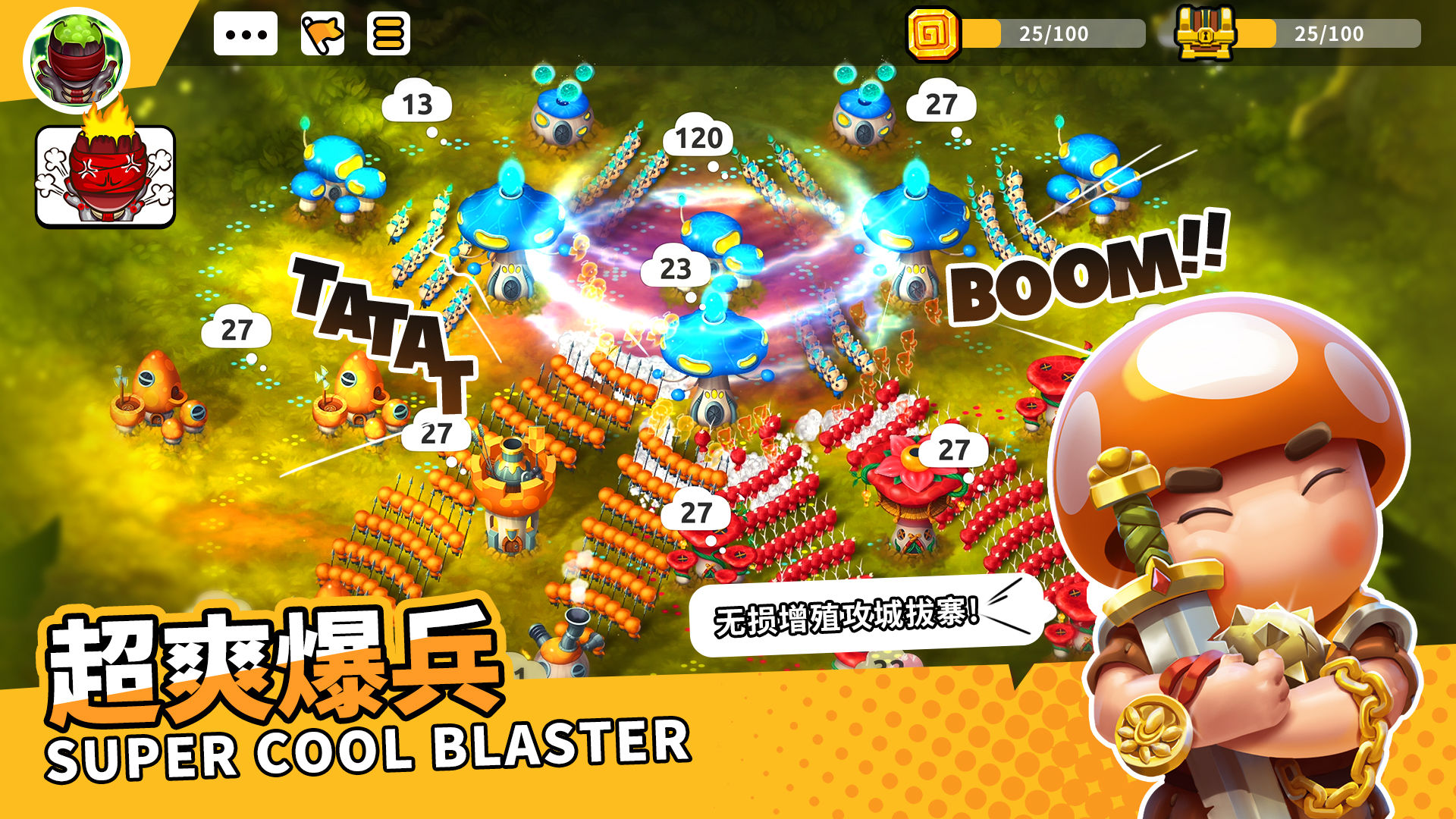 在这个平行宇宙的“蘑菇地球”上,不同种族之间的地盘争夺战从未停息,优秀的你将以首领的身份降临,挑选一名英雄领导你的军队,动动手指便可以随意指挥英勇善战的蘑菇士兵出征,利用自身的聪明才智控制战场、攻城拔寨!