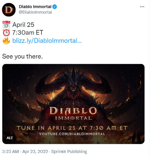 今日《暗黑破坏神:不朽》官方推特宣布将于4月25日北京时间19.30(美国东部时间7.30)举办直播活动,或将公布游戏的上线日期。