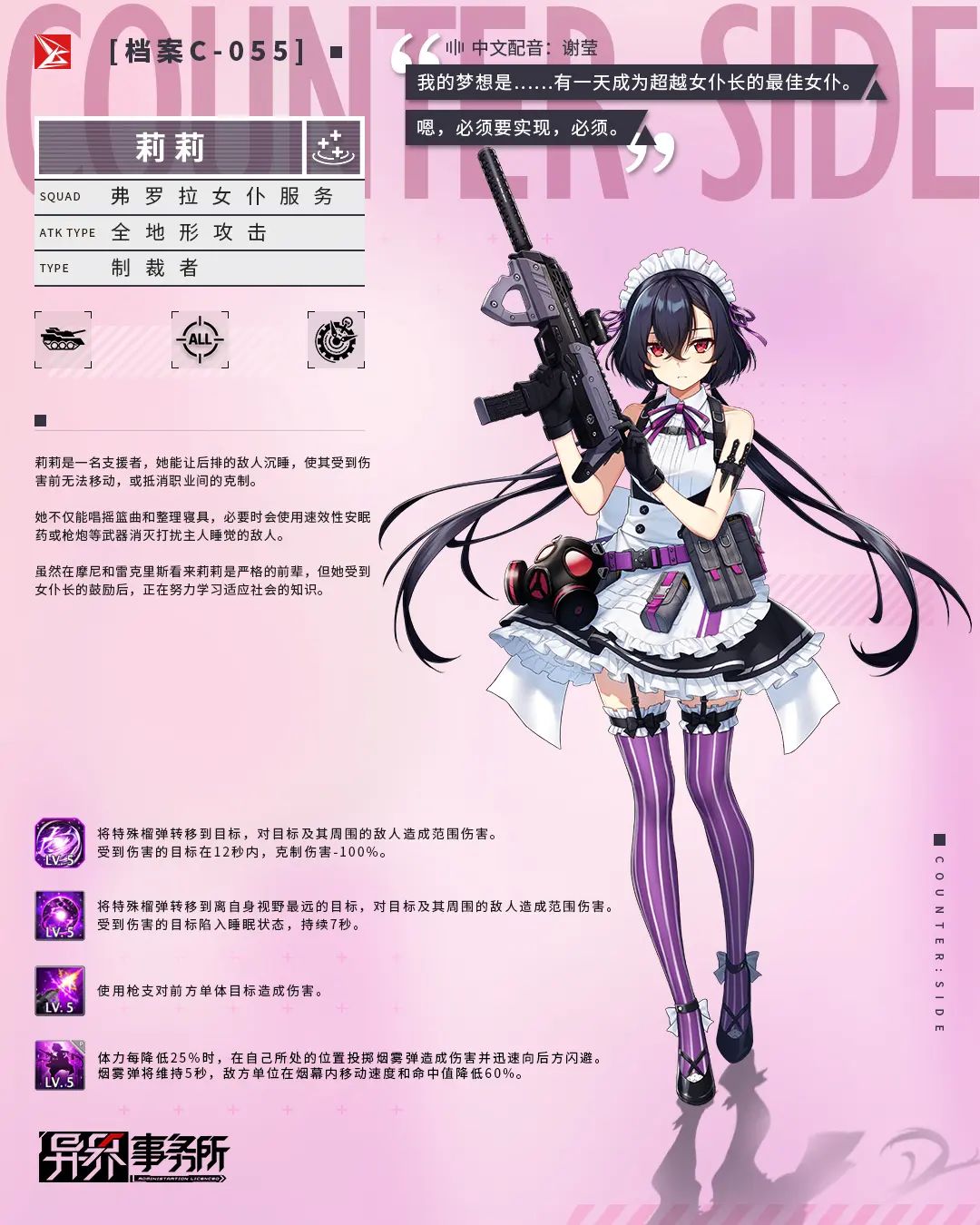 异界事务所新角色莉莉强度怎么?异界事务所是一款养成类型的休闲手游,在游戏里面玩家可以根据培养不同的角色来进行各种活动的攻略,最近官方为玩家推出来一个新的角色,下面就让我们来看看异界事务所新角色莉莉技能属性介绍。