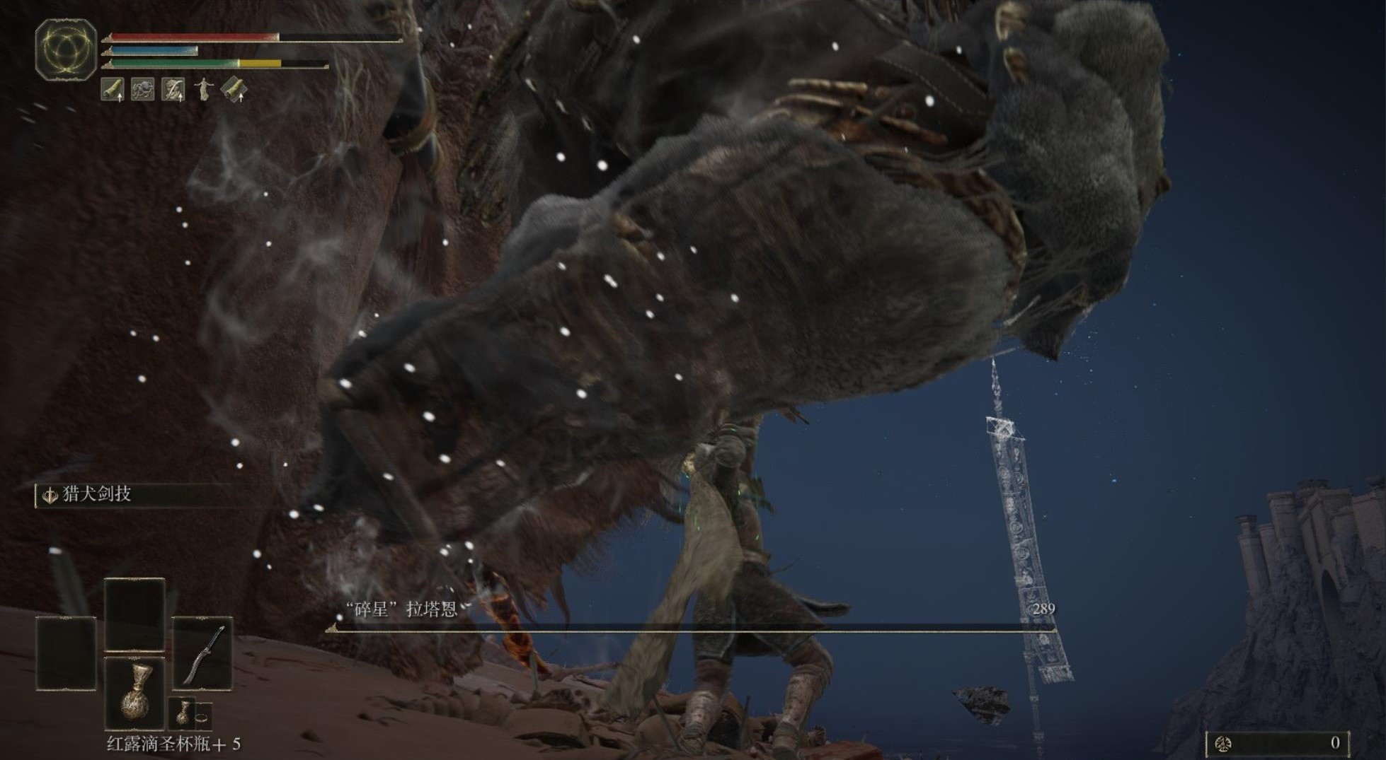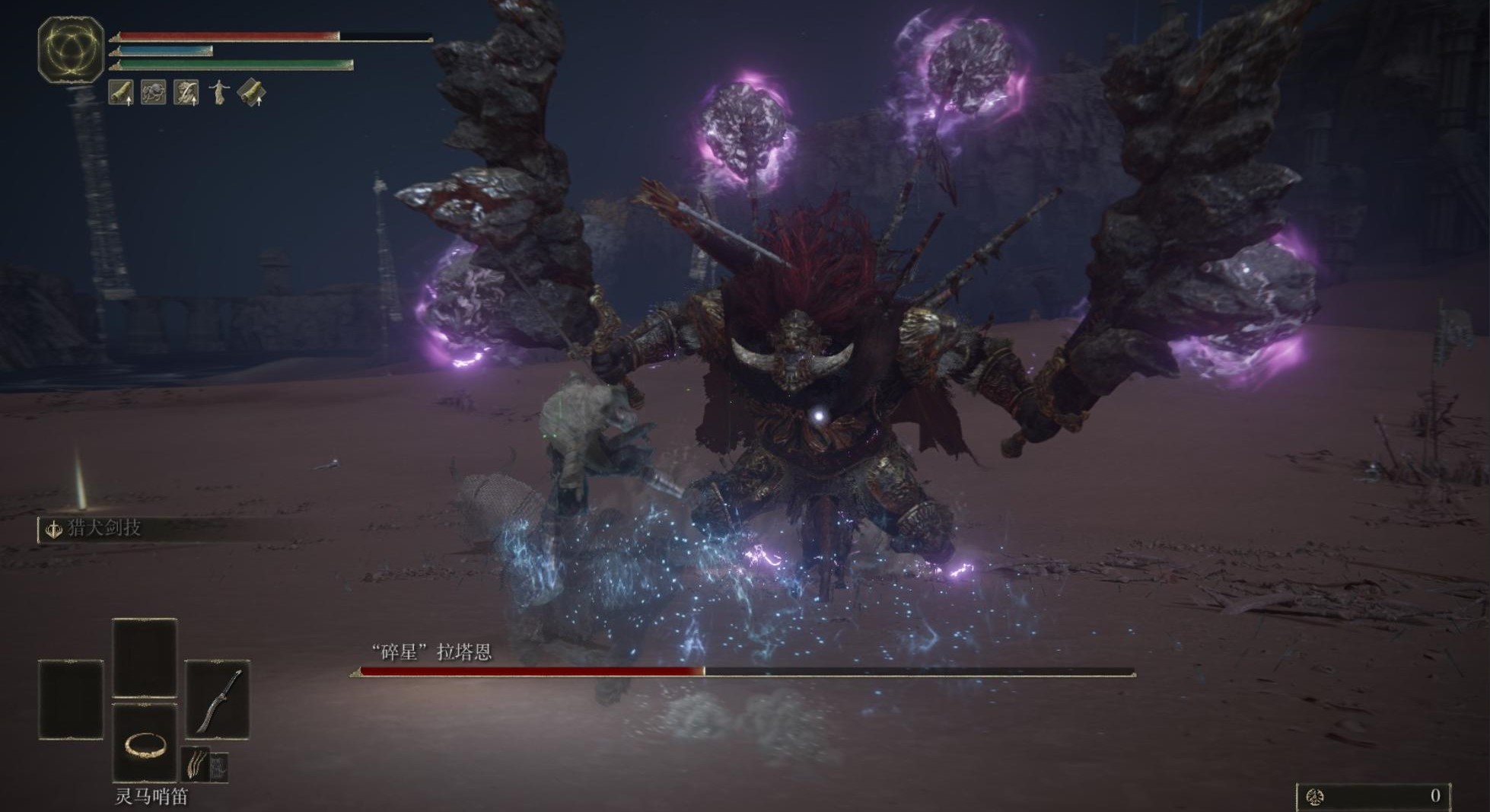 一阶段先摇人和躲箭,箭雨的躲法和魂三的吃神基本一样,靠近后碎星应该会先攻击玩家,这时候躲开攻击然后钻裆输出最佳,武器推荐用出血类武器,我用的猎犬大曲,血没了就拉开,基本就在裆下和身后输出 一阶段双手下砸输出机会很大,但是必须在身后,大曲削韧大概可以出处决,能处决就处决,不能就继续身后输出因为他处决时间很短
