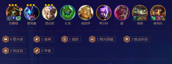 2:这是顶级的格斗家阵容了,费用和人口都是顶级的,装备的话给烈娜塔当大哥;